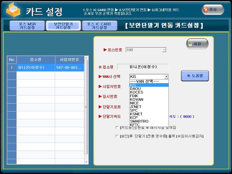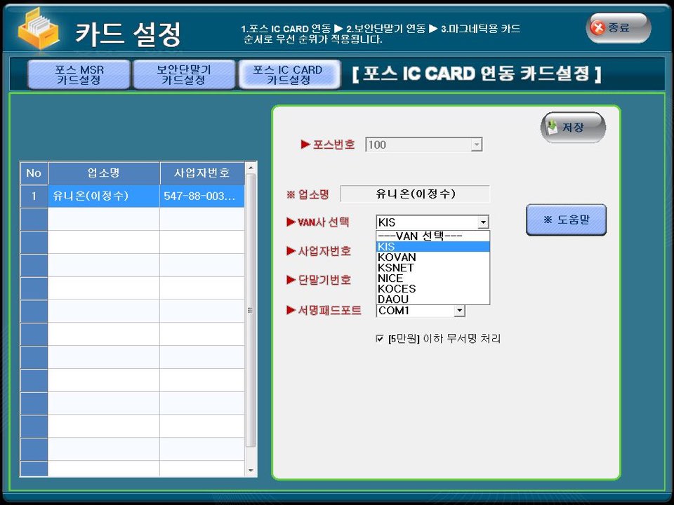 À¯´Ï¿Â POS ¿¬µ¿ Ä«µå ¼³Á¤ ¾È³»